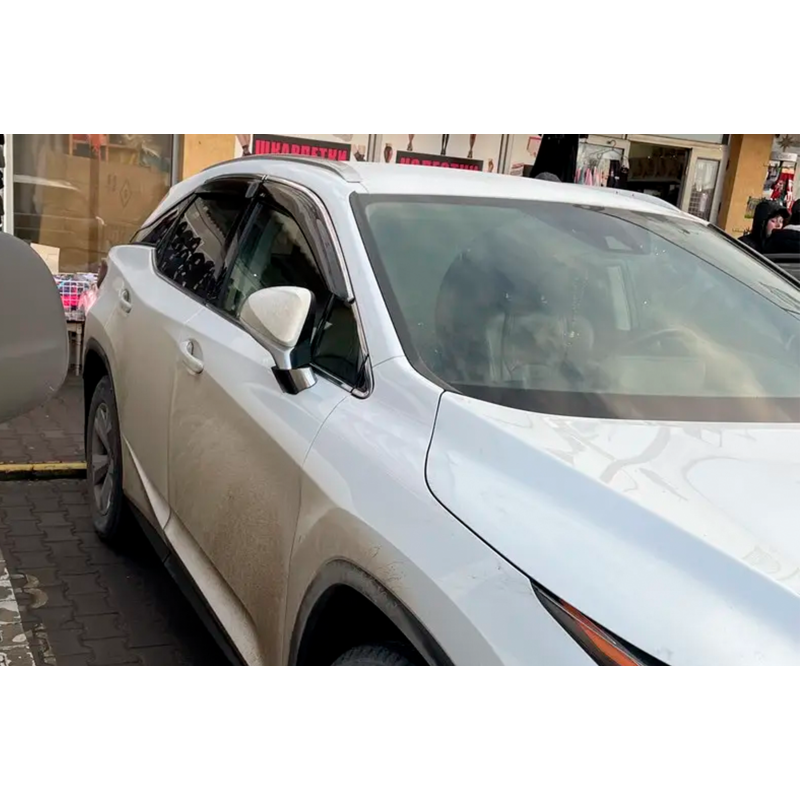 Ветровики с хромированным молдингом LONG (4 шт, HIC) для Lexus RX 2016-2022 гг